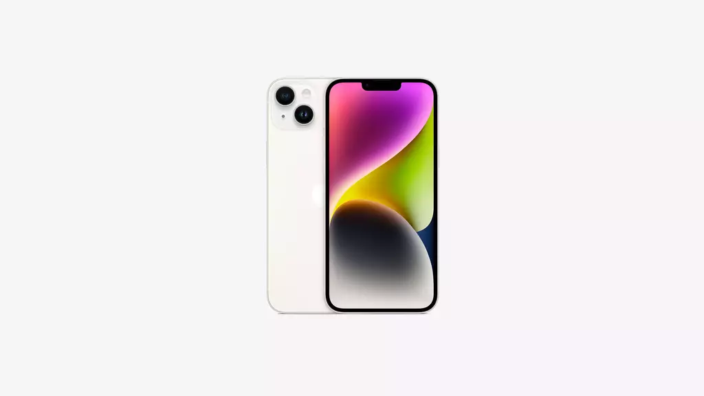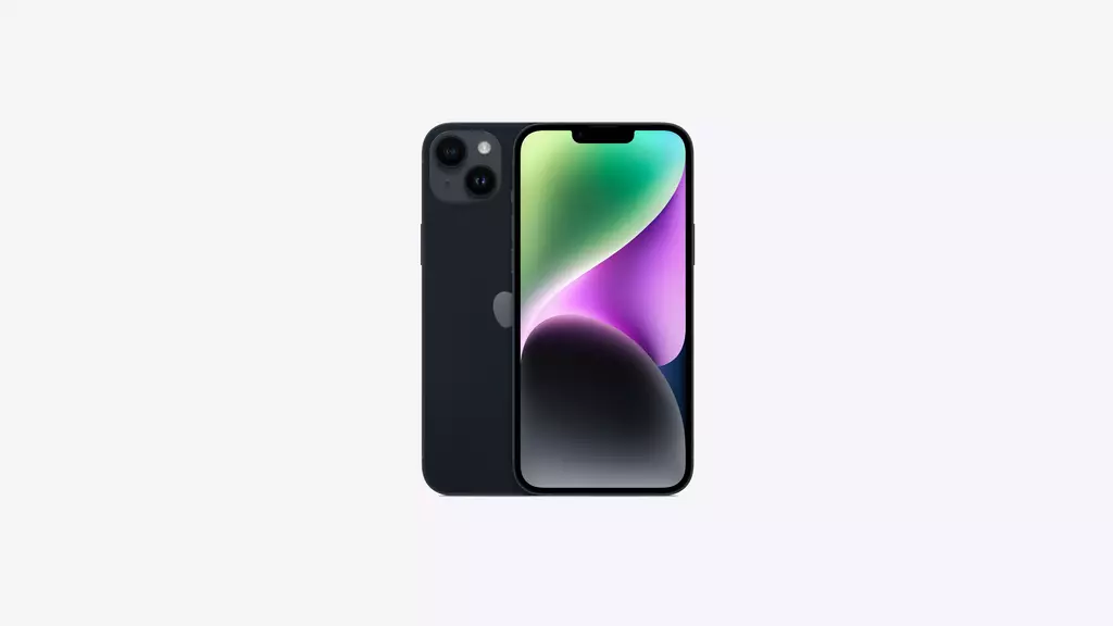 “Com o iPhone 14 Plus, você pensa grande na supertelona de 6,7 polegadas* e tem bateria para o dia todo**.