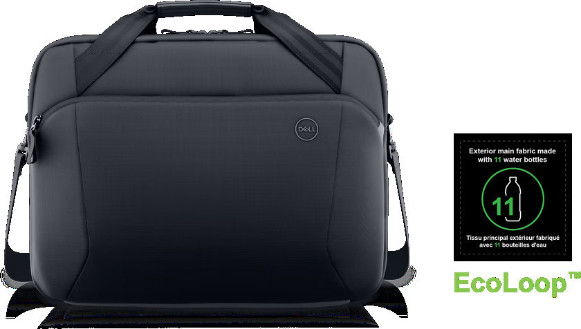 Embalagem, etiqueta e alças produzidas com materiais 100% reciclados.