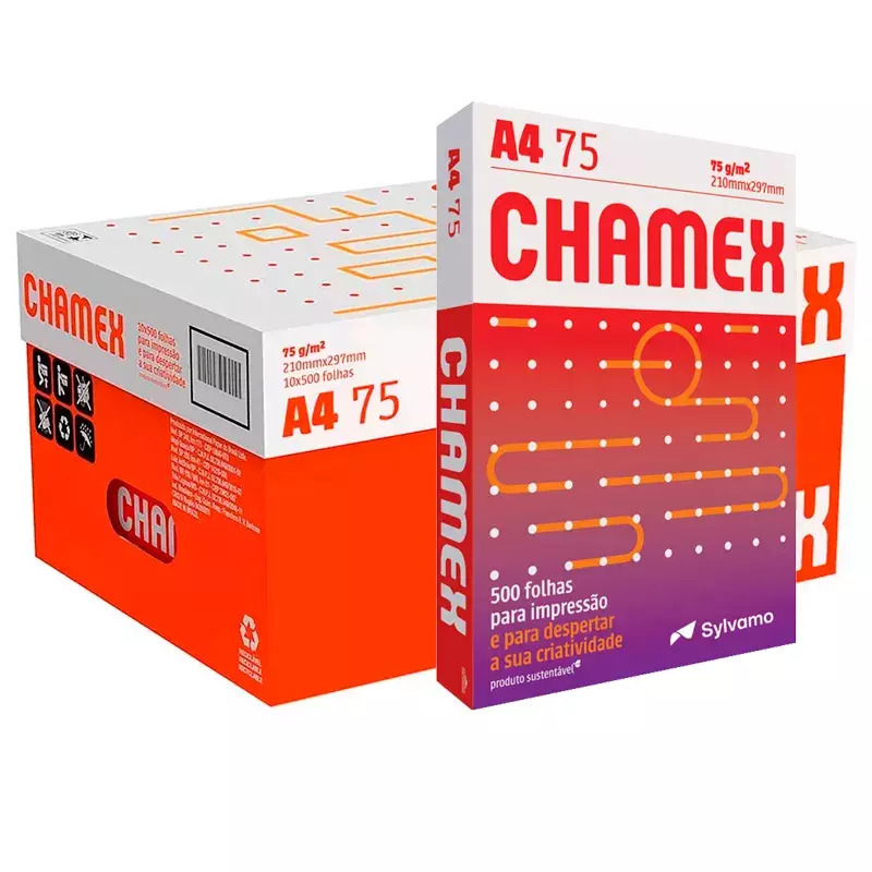 Chamex A4 75g garante ótima performance em todo tipo de atividade, como criar, escrever, imprimir e reproduzir. Com superfície resistente, corte perfeito e equilibrada absorção, permite melhor deslizamento do papel na impressora e evita desperdício de tinta. É produzido a partir do cultivo de eucalipto 100% renovável e as fibras são tratadas para obter o mais elevado grau de brancura.