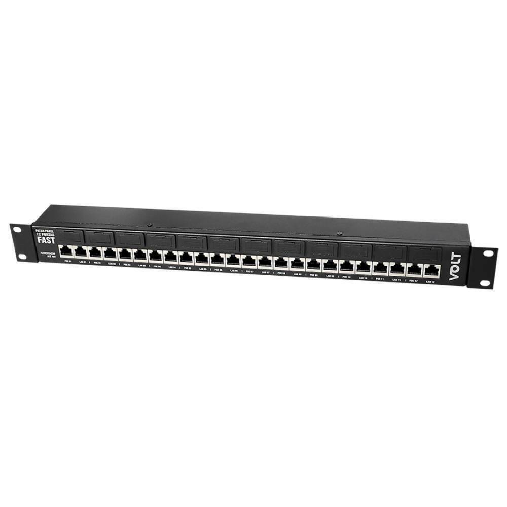 Permite ligar até 12 equipamentos com tensões distintas. Possui três entradas de alimentação individuais (12, 24 e 48Vdc) e três opções de tensão nas saídas POE. Podendo selecionar entre as portas 1 a 8 12Vdc ou 24Vdc e entres as portas 9 a 12 a tensão de saída é fixada em 48Vdc. A seleção de tensão é feita por chave frontal, cada porta possui um led com indicação luminosa colorida para identificação da tensão de saída. Utilizado para reduzir a quantidade de cabos e tomadas na instalação, pois concentra o tráfego de dados e energia no mesmo cabo UTP – tecnologia PoE, compatível com a norma IEEE 802.3.AT (pinos 4 e 5 positivo/ 7 e 8 negativo). Além de utilizar fontes nobreak que garantem o funcionamento dos aparelhos por muito mais tempo em uma eventual falta de energia elétrica. Possui sistema de proteção individual para cada porta e conectores RJ45 blindados. Indicado para aplicações em câmeras IP, antenas de transmissão de Internet, sistemas Wireless, VOIP, entre outros.